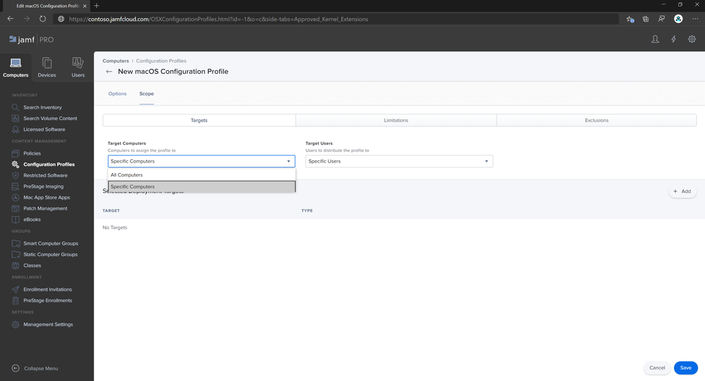 On the Assignments tab, assign the profile to a group where the macOS devices and/or users are located, or All Users and All devices.