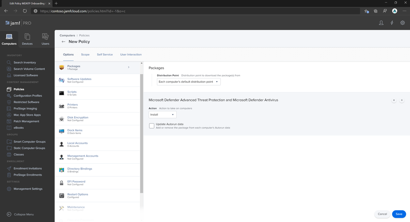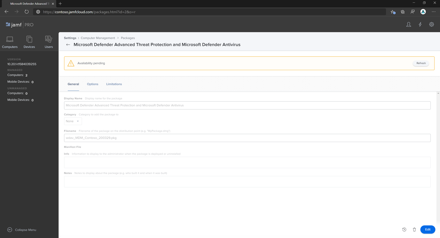 wdav_MDM_Contoso_200329.pkg.Open the Jamf Pro dashboard.