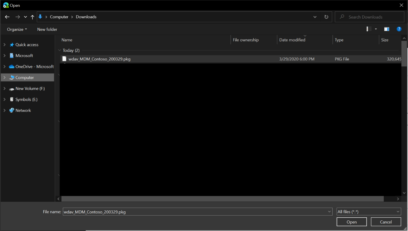 com.microsoft.wdav.atp.Select Open and select the onboarding file.