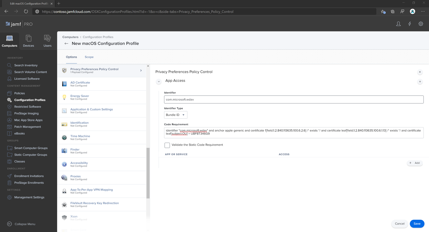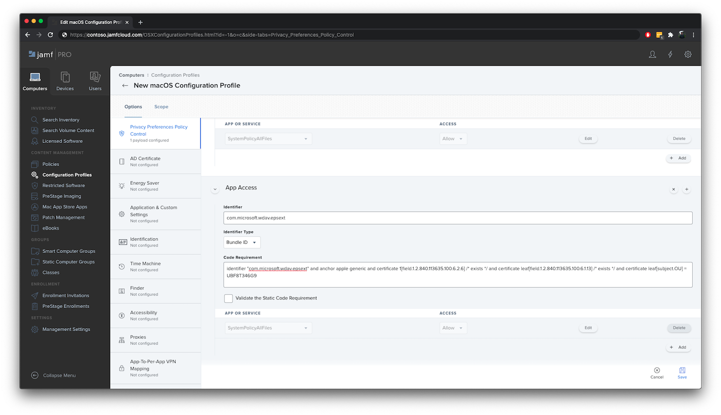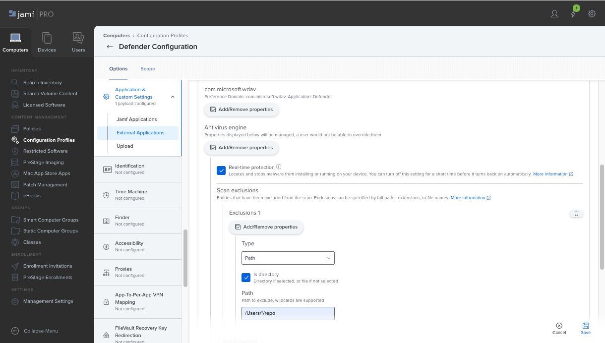 Use this article to set up policies for Defender for Endpoint on macOS using Jamf Pro.