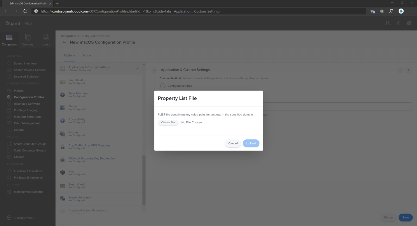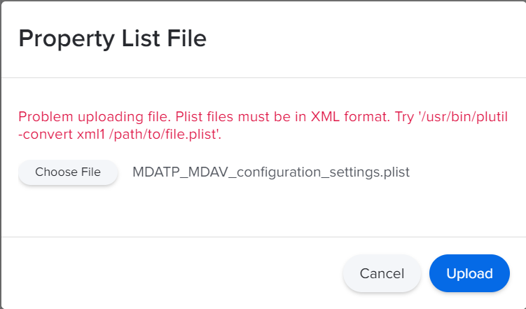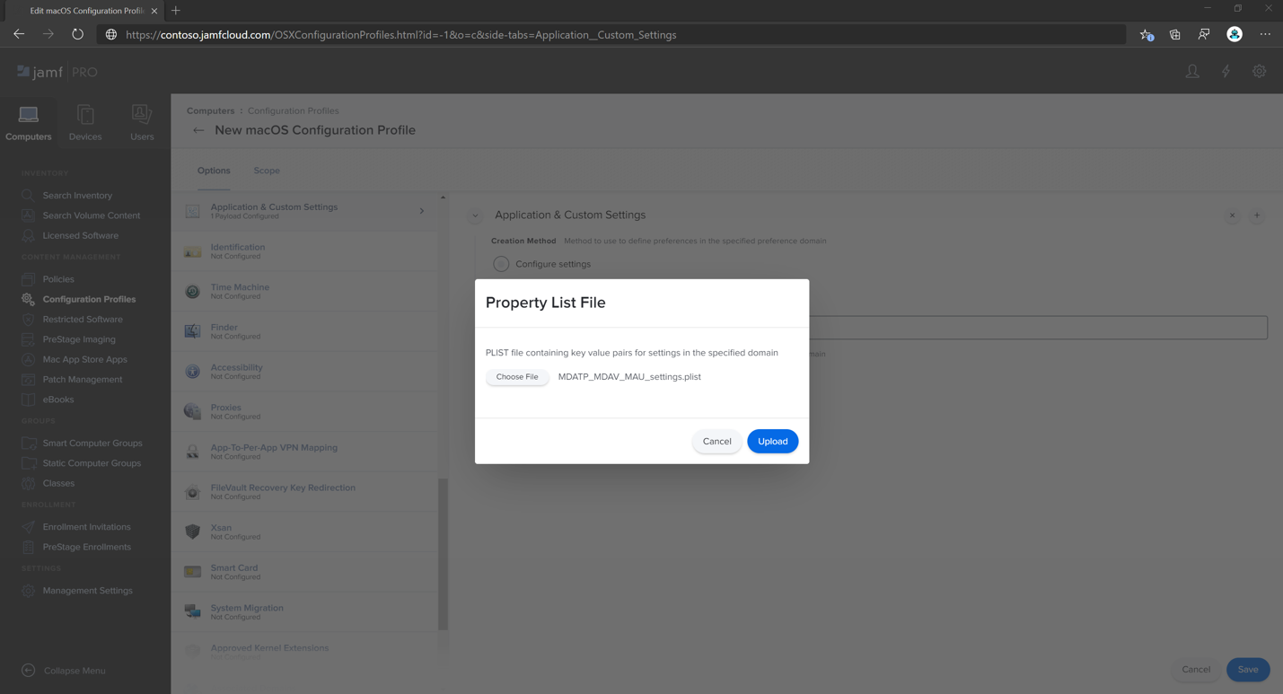com.microsoft.wdav, and then select Upload PLIST File.Select Choose File.
