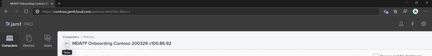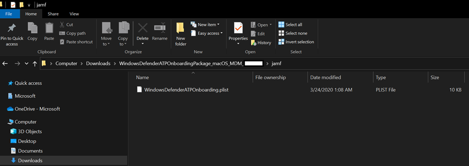 C:\Users\JaneDoe_or_JohnDoe.contoso\Downloads\WindowsDefenderATPOnboardingPackage_macOS_MDM_contoso\Jamf\WindowsDefenderATPOnboarding.plist.