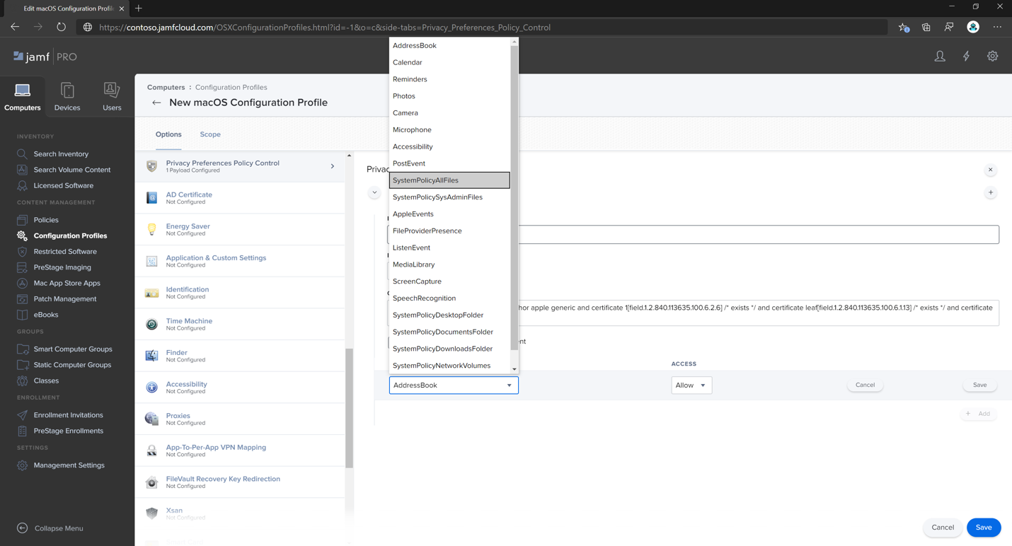 Alternatively, you can download fulldisk.mobileconfig and upload it to Jamf Configuration Profiles as described in Deploying Custom Configuration Profiles using Jamf Pro|Method 2: Upload a Configuration Profile to Jamf Pro.