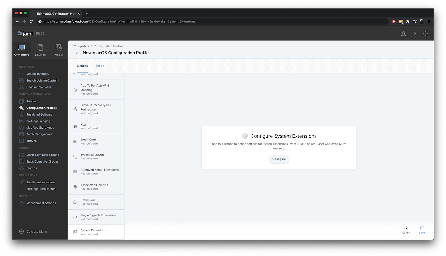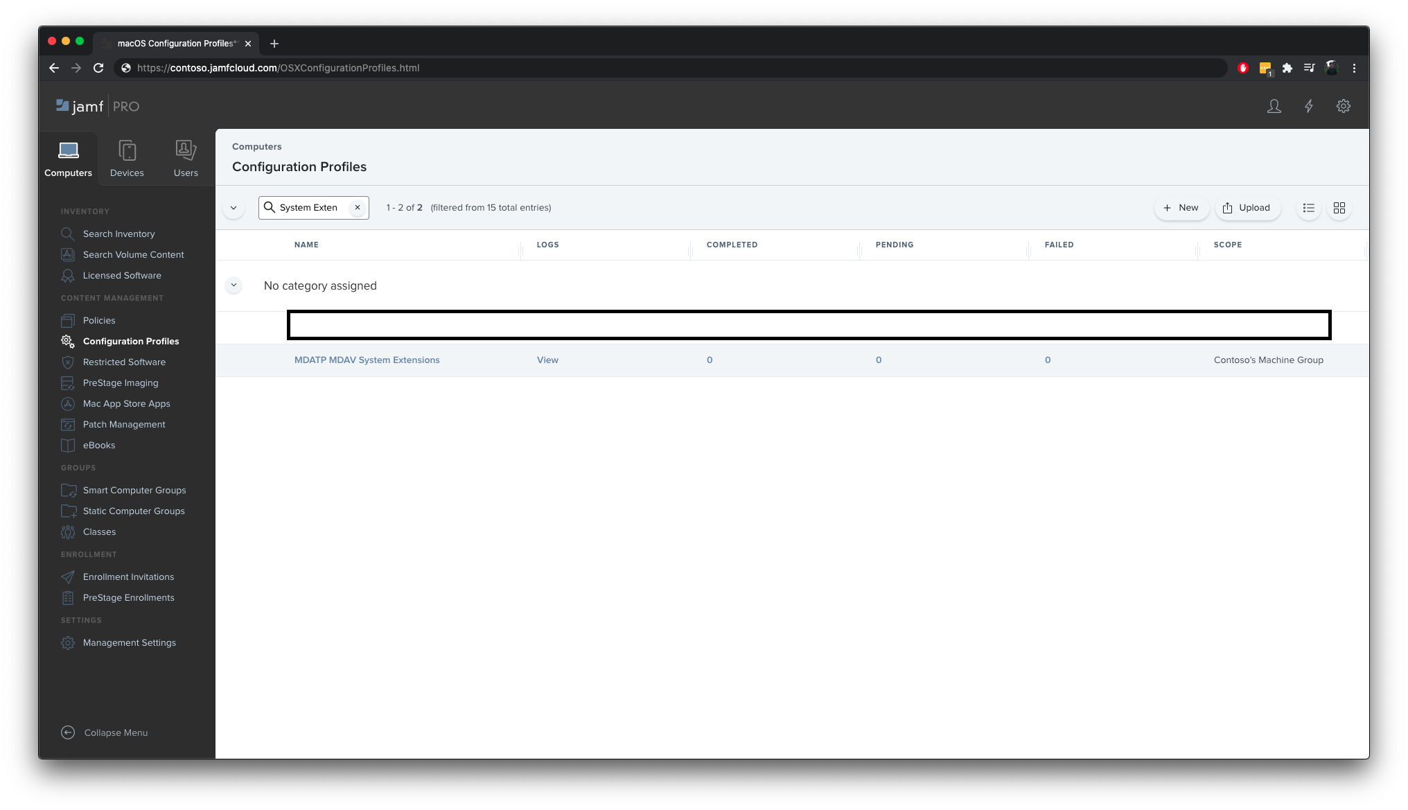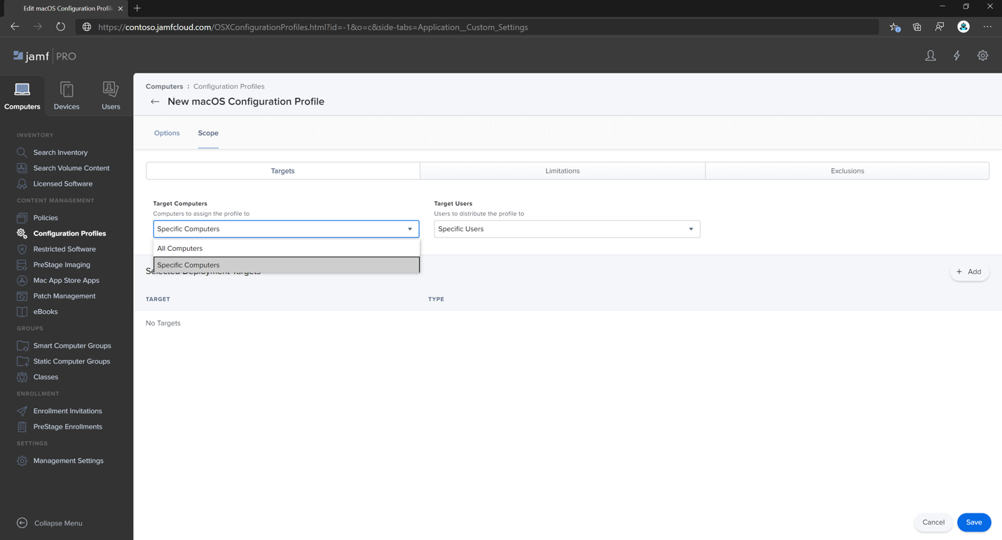 In the Jamf Pro dashboard, select Computers, then Configuration Profiles.