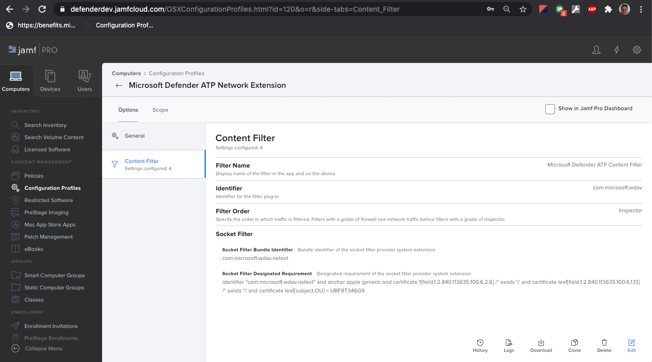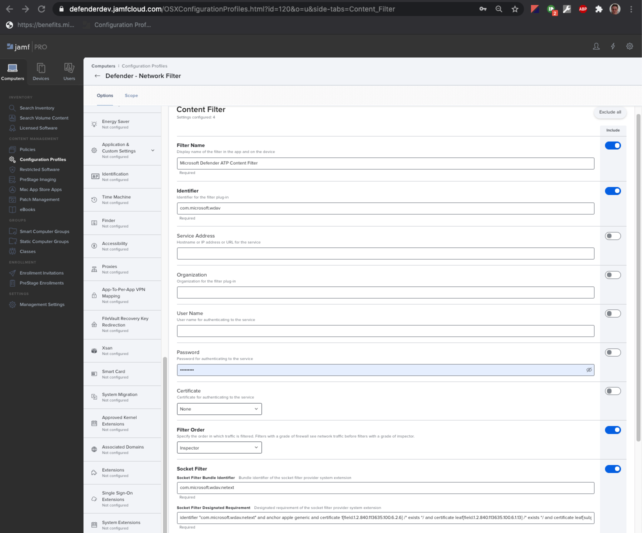 Alternatively, you can download netfilter.mobileconfig and upload it to Jamf Configuration Profiles as described in Deploying Custom Configuration Profiles using Jamf Pro|