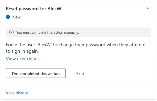 For cards with required actions that you need to perform manually, select I've completed this action once you've performed them, then select Yes, I've done it in the confirmation dialog box that appears.