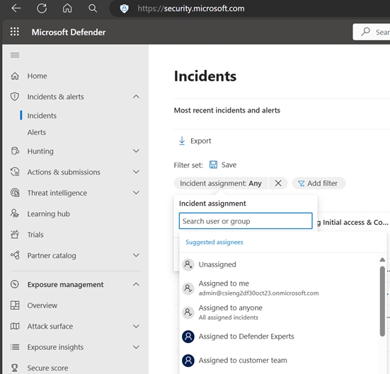 To view the incidents our experts are currently investigating, use the Incident assignment filter, select Assigned To Defender Experts.