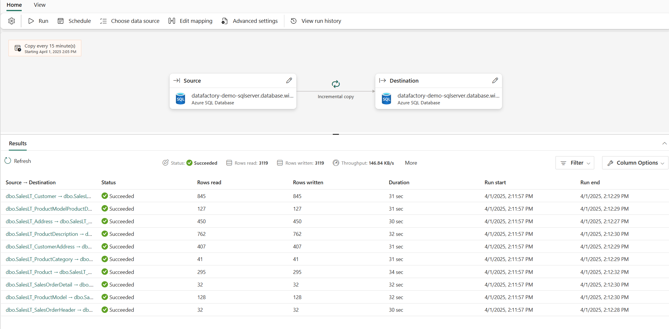 You can also edit your Copy job at any time, including adding or removing tables and columns to be copied, configuring the schedule, or adjusting advanced settings. Some changes, such as updating the incremental column, will reset the incremental copy to start from an initial full load in the next run.