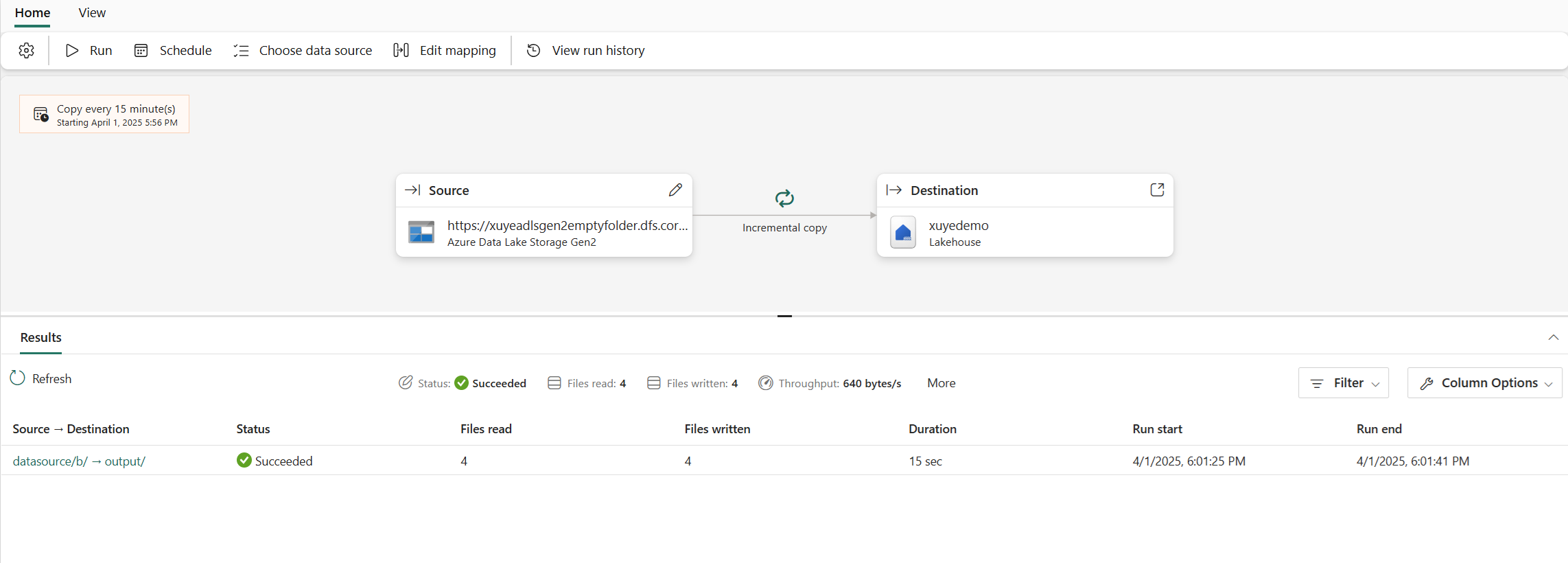You can re-run your Copy job whenever you want, even if it's set to run on a schedule. Just select the Run button at any time, and Copy job copies only the data that's changed since the last run.