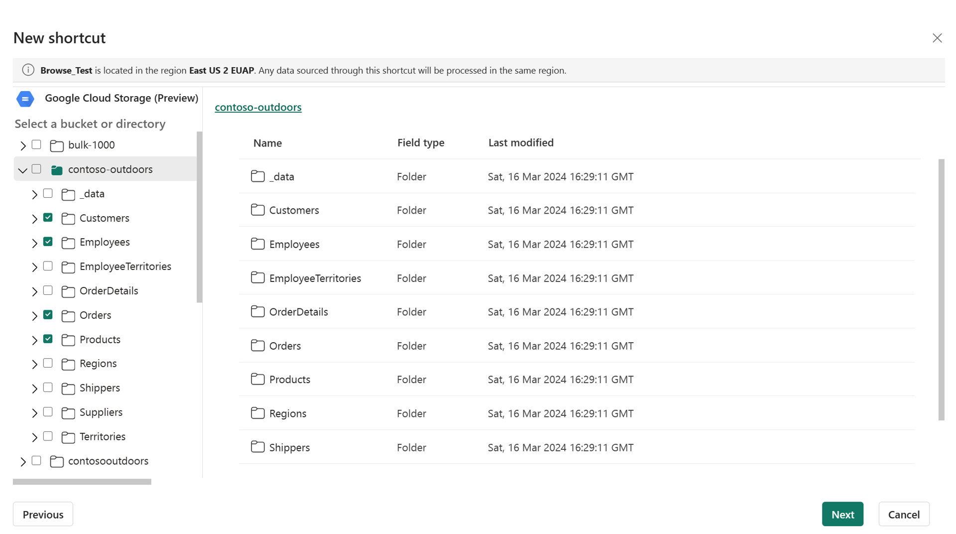 Ensure your chosen GCS bucket and user meet the access and authorization requirements for GCS shortcuts.