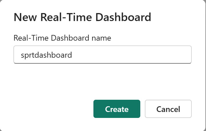 On the New Real-Time Dashboard popup, enter a name for the dashboard, and select Create.