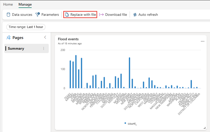 Under the Manage tab, you can manage data sources and parameters, as well as configure settings for Auto refresh.
