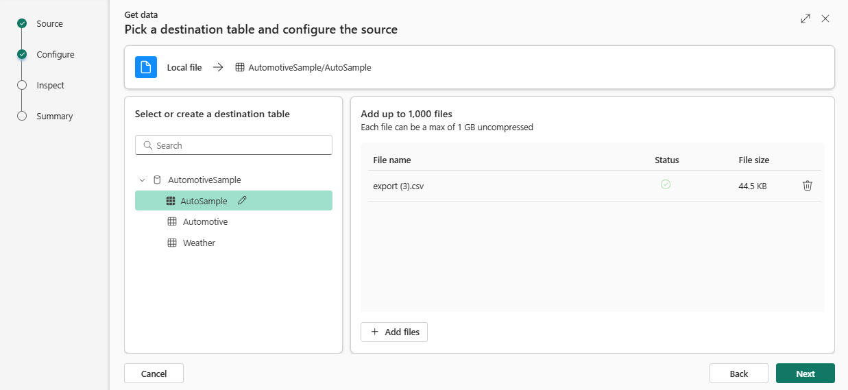 Select a target table. If you want to ingest data into a new table, select + New table and enter a table name.