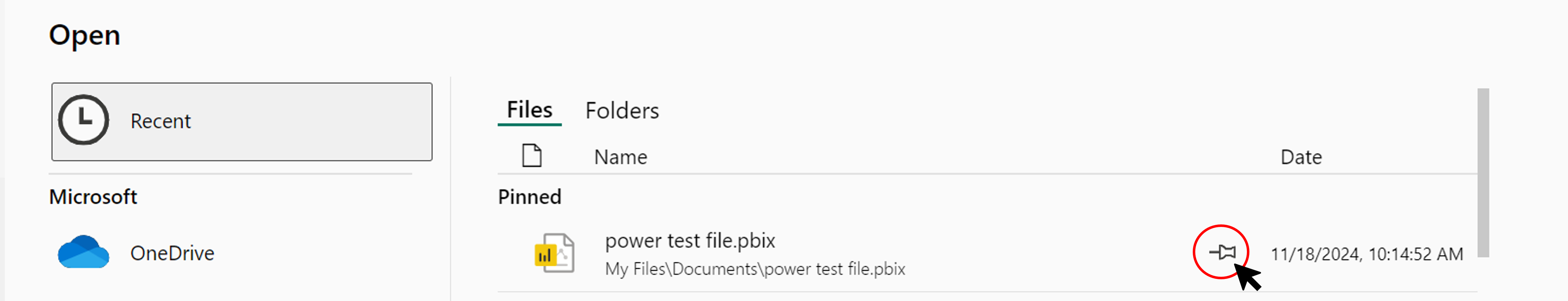 You can also easily pin and unpin recent files and folders in the file picker while opening files in OneDrive and SharePoint. Simply select or deselect the pin icon next to the file to pin or unpin the file.