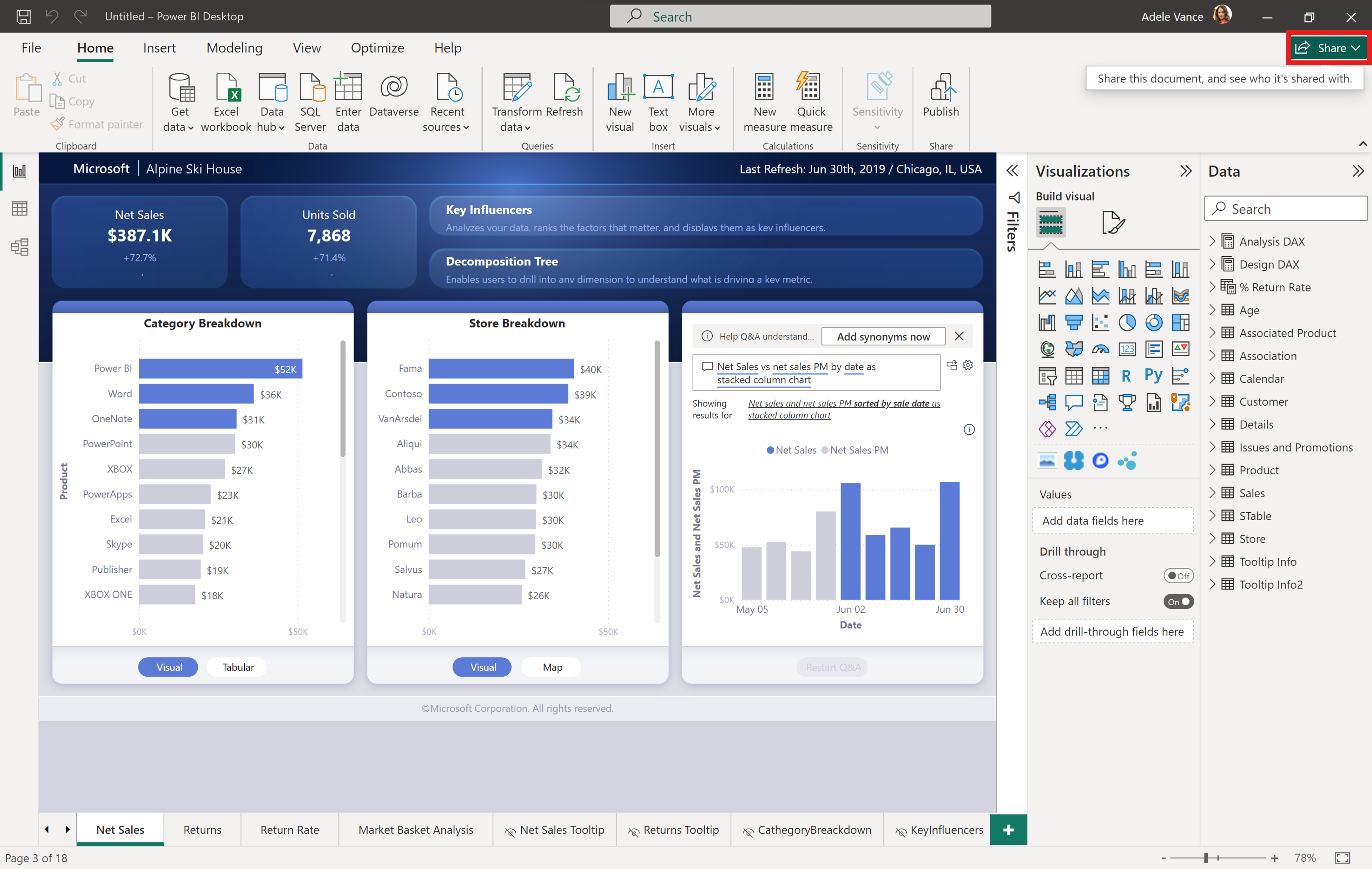 After saving your preference, restart Power BI Desktop. If the capability is turned on, you see a Share button at the top right of Power BI Desktop.