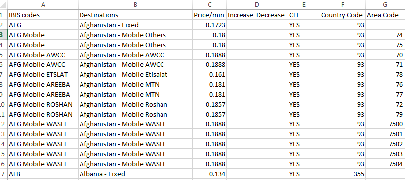 We into telecom industry, basically deals with prices on per call basis for all the cites in the country.