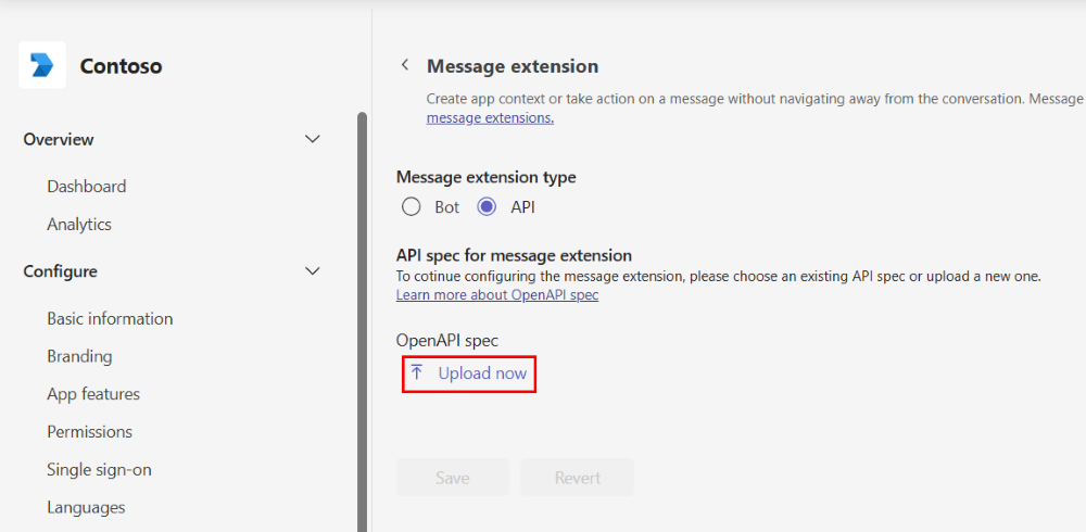 composeExtensions.apiSpecificationFileas the relative path to the OpenAPI Description file within the folder. This links the app manifest to the API specification.Define