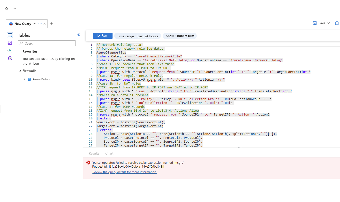 How to fix 'parse' operator: Failed to resolve scalar expression named 'msg_s' If the issue persists, please open a support ticket. Request id: 117cf54a-1039-4496-b8b1-13730efa136e