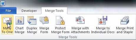 Another alternative if you export you data source to Excel would be to use the Merge with Attachments (attachments are not mandatory) utility on the MergeTools – 20140218.dotm Add-in that I created that you can download from the following page of my One Drive: