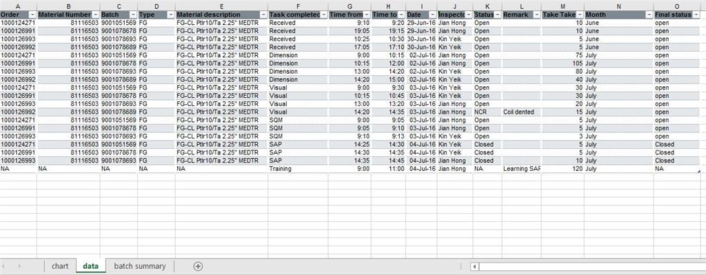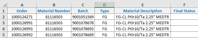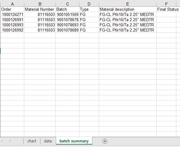 Step 4: Now Copy the F2 cell of your "batch summary" sheet, where you have just seen the above formula with '{' '}', and copy down to the end of F5 as you have asked in your request. Now you will see the final status like below: