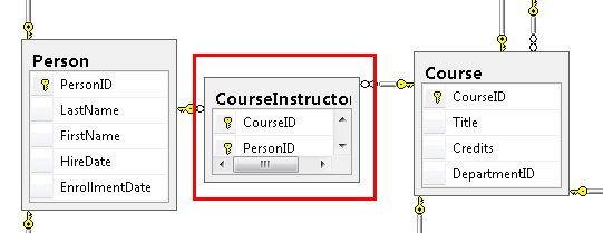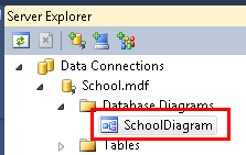 If you download the School.mdf file that goes with this tutorial, you can view the database diagram by double-clicking SchoolDiagram under Database Diagrams in Server Explorer.