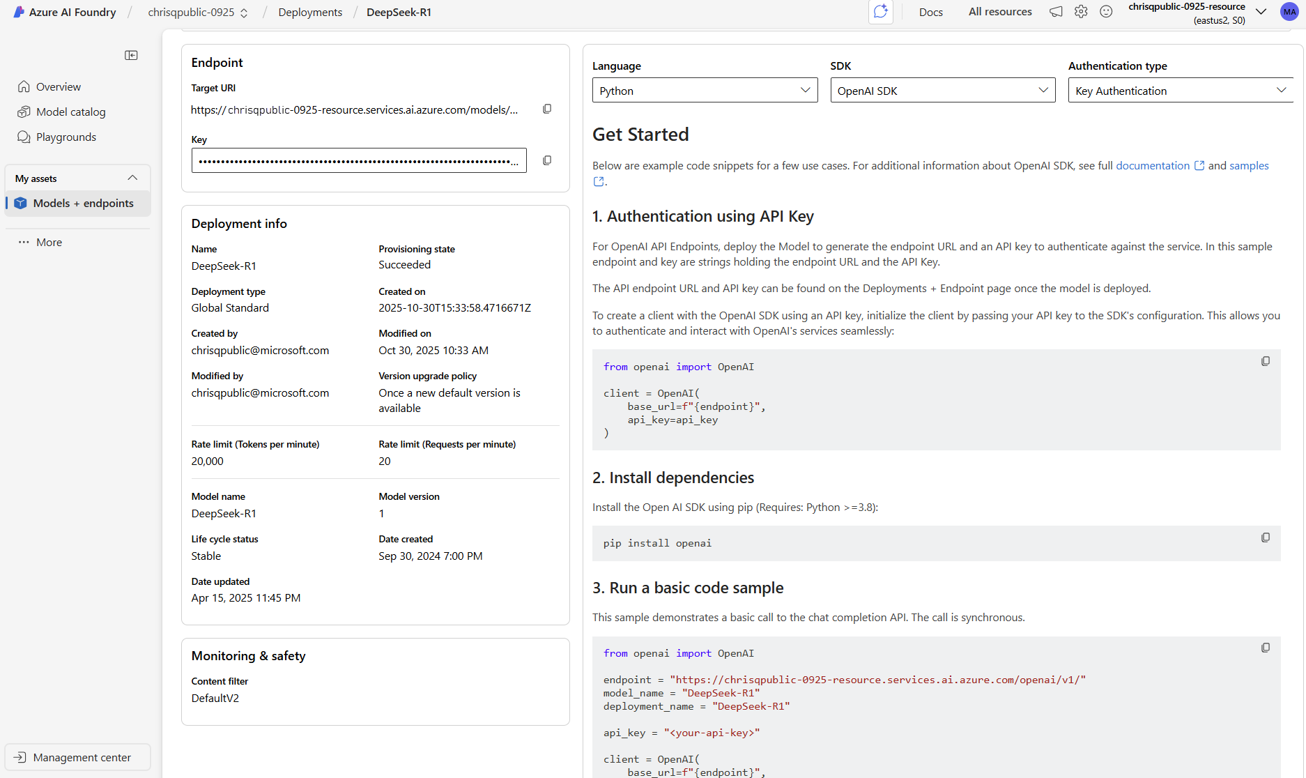 - Create and configure the Azure resources to use DeepSeek-R1 in Foundry Models.