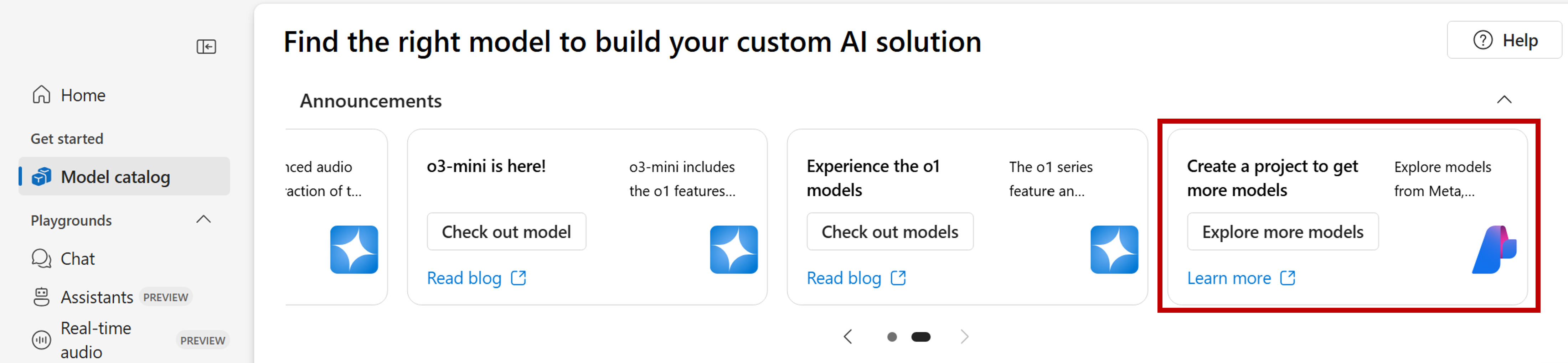 Because you can customize the left pane in the Microsoft Foundry portal, you might see different items than shown in these steps. If you don't see what you're looking for, select ... More at the bottom of the left pane.