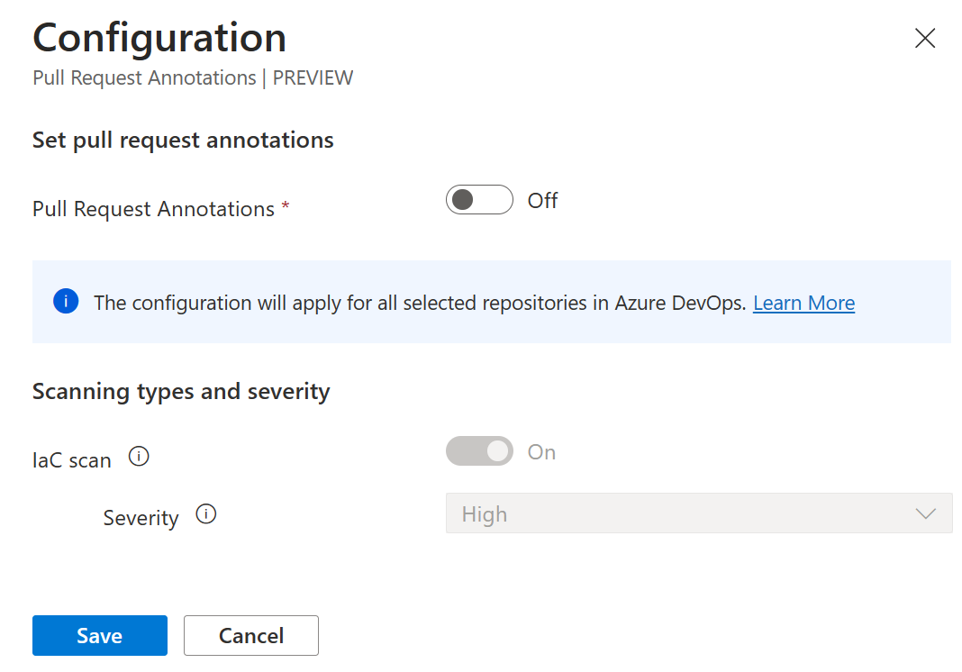 With Microsoft Defender for Cloud, you can configure PR annotations in Azure DevOps. You can get PR annotations in GitHub if you're a GitHub Advanced Security customer.