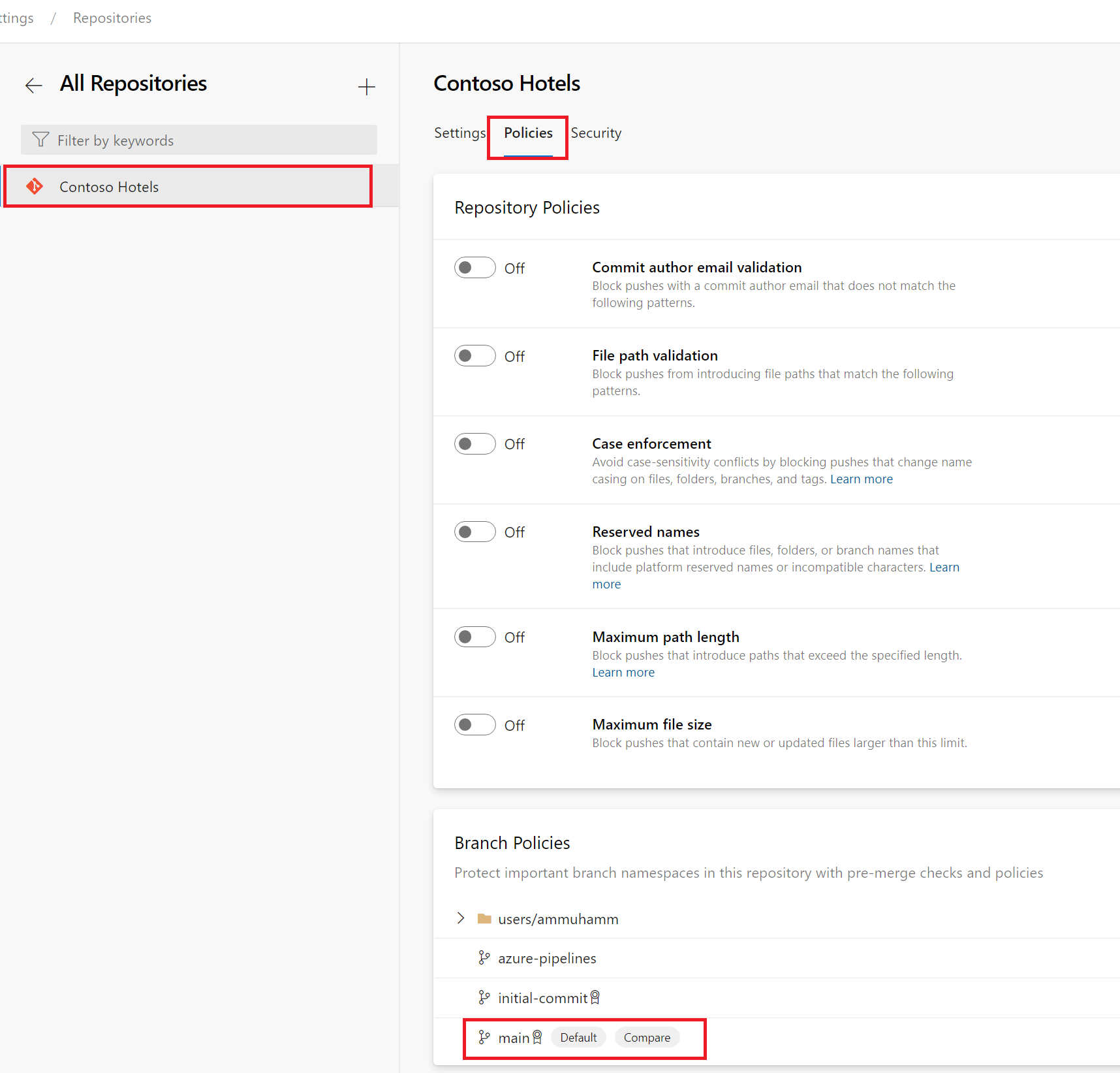 Navigate to Branch Policies > Main branch.