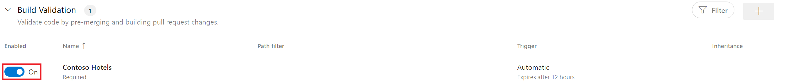 Ensure the build validation for your repository is toggled to On.