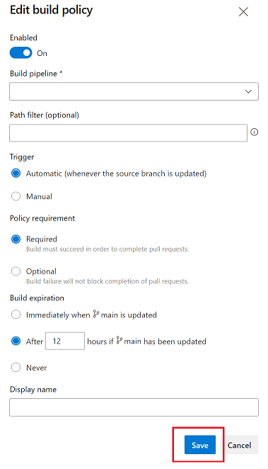 Enable Build Validation policy for the CI Build