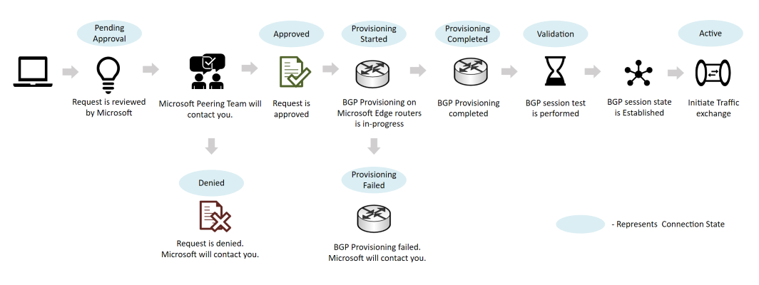When your peering request is approved, the connection state changes to ProvisioningStarted.