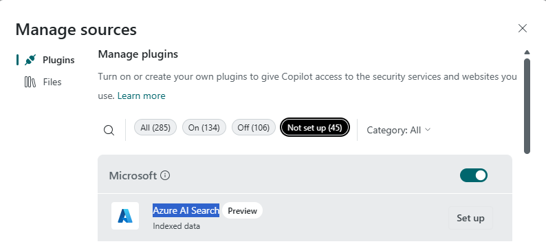 in the prompt bar.Go to Microsoft > Azure AI search and select Set up.
