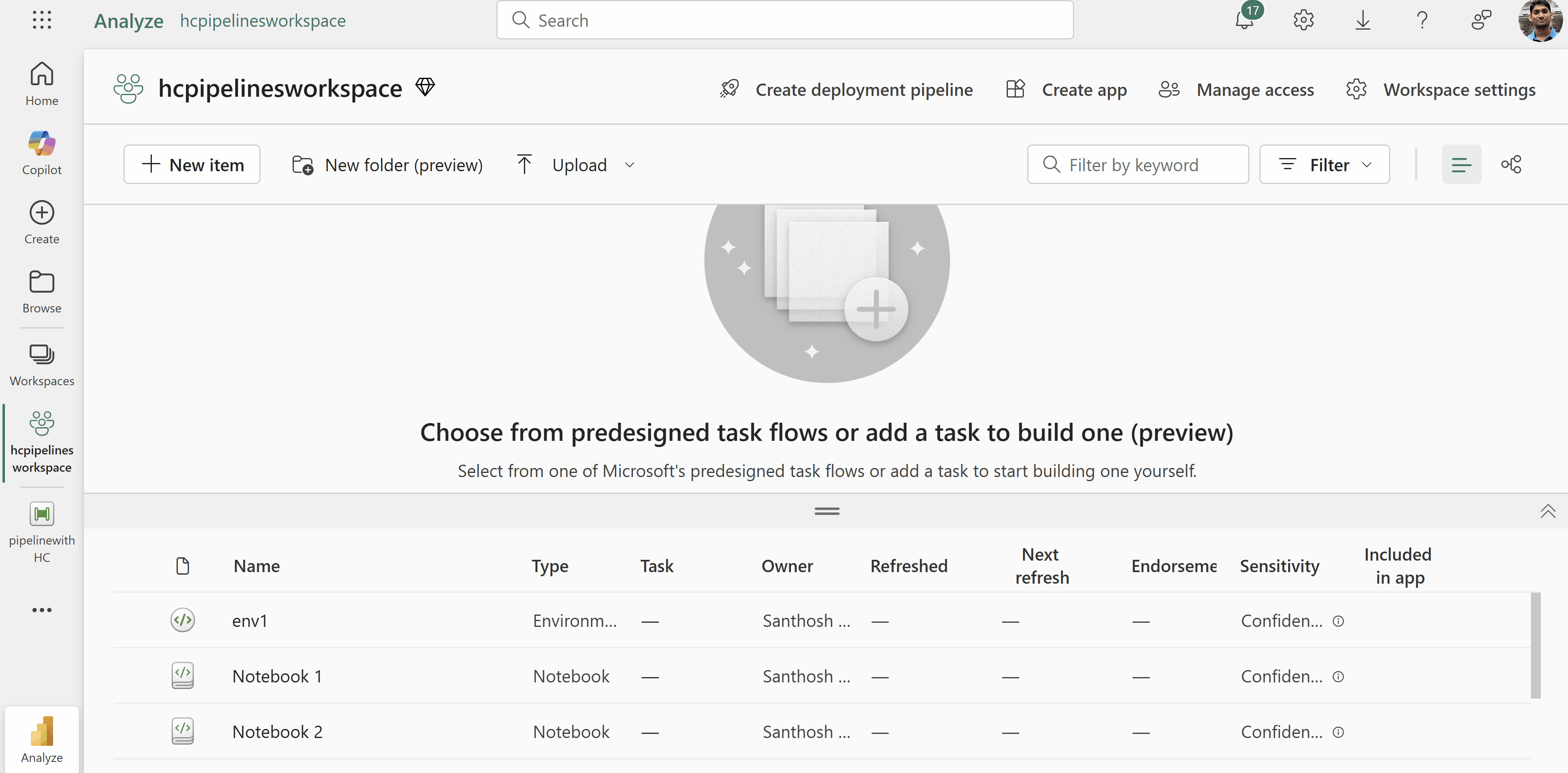 Navigate to your workspace, select the New item button, and create a new Pipeline.