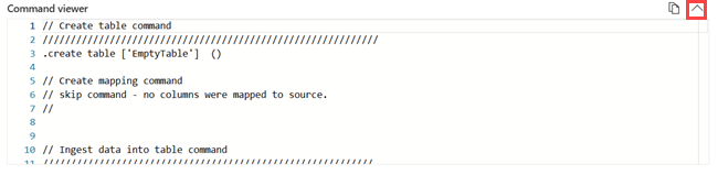 - To see a read-only view of the commands that will run to create the table, you can open the Command viewer.