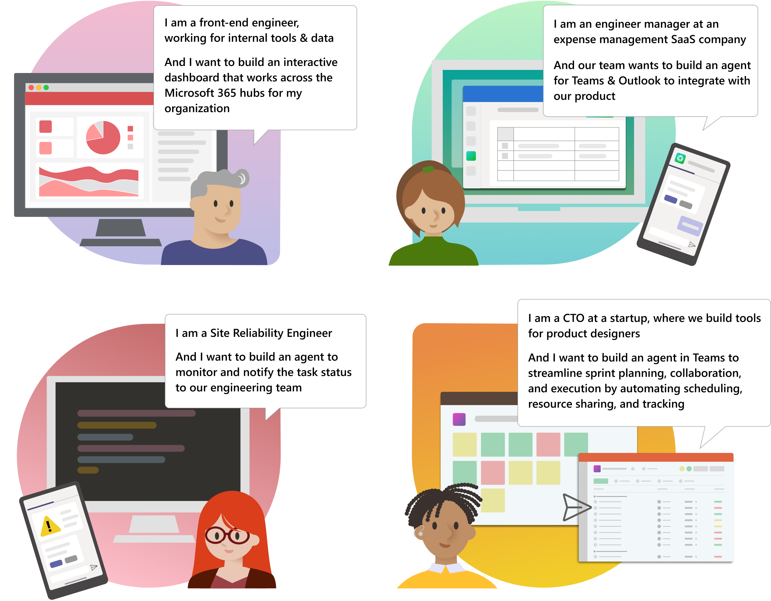 Take a look at these example developer personas and agent or app scenarios: