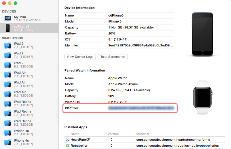 Watches are no different - you now need to add your Apple Watch device before deploying apps to it. Find the watch's UDID using Xcode (Windows > Devices list). When the paired phone is connected the watch's information will also be displayed: