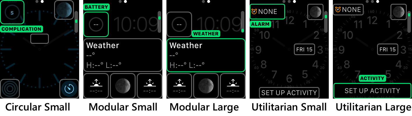 Apps can implement just one style, or all five, depending on the data being displayed. You can also support Time Travel, providing values for past and/or future times as the user turns the Digital Crown.