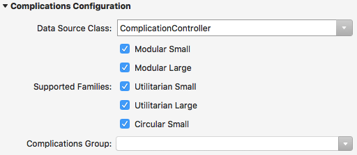 CLKComplicationDataSource. - Configure the app's Info.plist to expose the complication, and identity which complication families are supported.