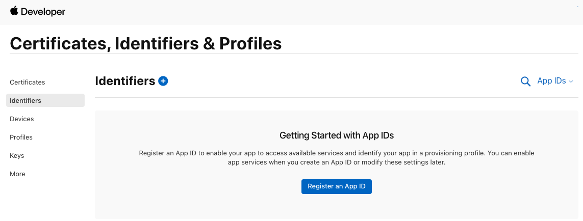 You need to register an App ID for every application. Follow the steps below to create an entry: