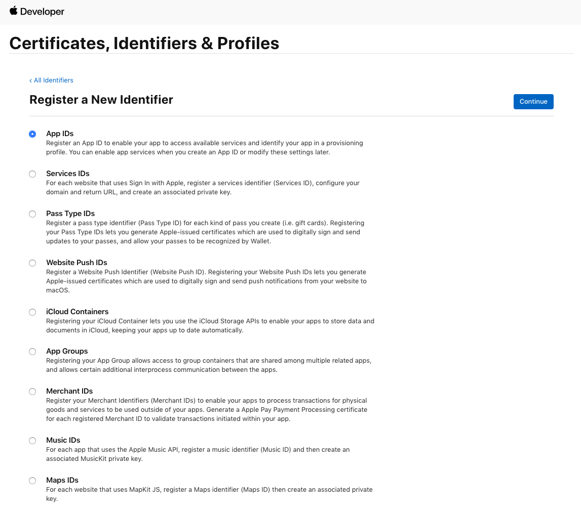 - Register Mac App ID – The developer will need to follow these steps for each application they write.