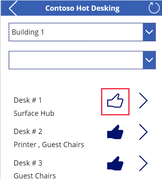 The gallery should appear like the following image. Select the thumbs up icon of one of the desks.