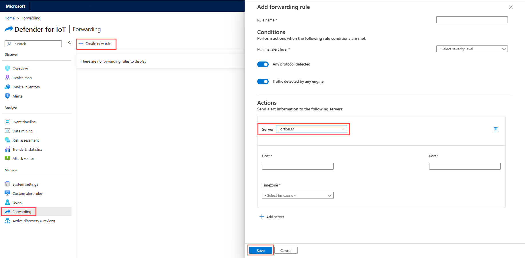 You can then use Defender for IoT's Forwarding Rules to send alert information to FortiSIEM.
