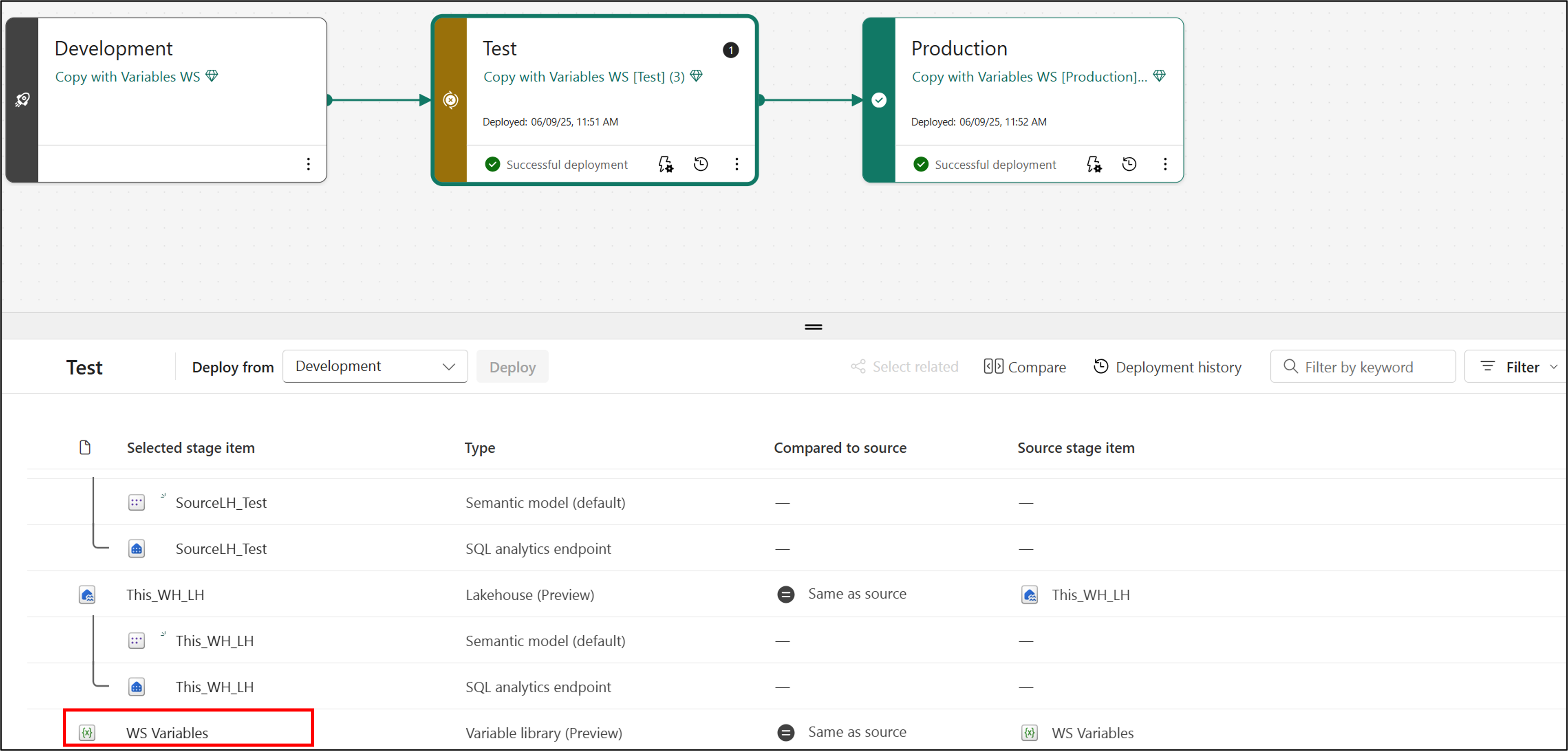 Variable libraries and deployment pipelines