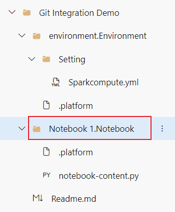 When you commit the notebook item to the Git repo, the notebook code is converted to a source code format, instead of a standard .ipynb file. For example, a PySpark notebook converts to a notebook-content.py file. This approach allows for easier code reviews using built-in diff features.