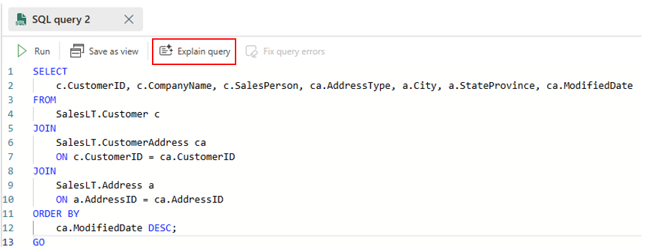 To use Copilot to explain your queries, follow these steps: