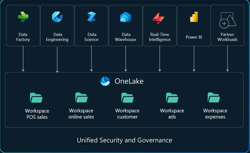 Before OneLake, many organizations created multiple lakes for different business groups, which led to extra overhead for managing multiple resources. OneLake removes these challenges by improving collaboration: