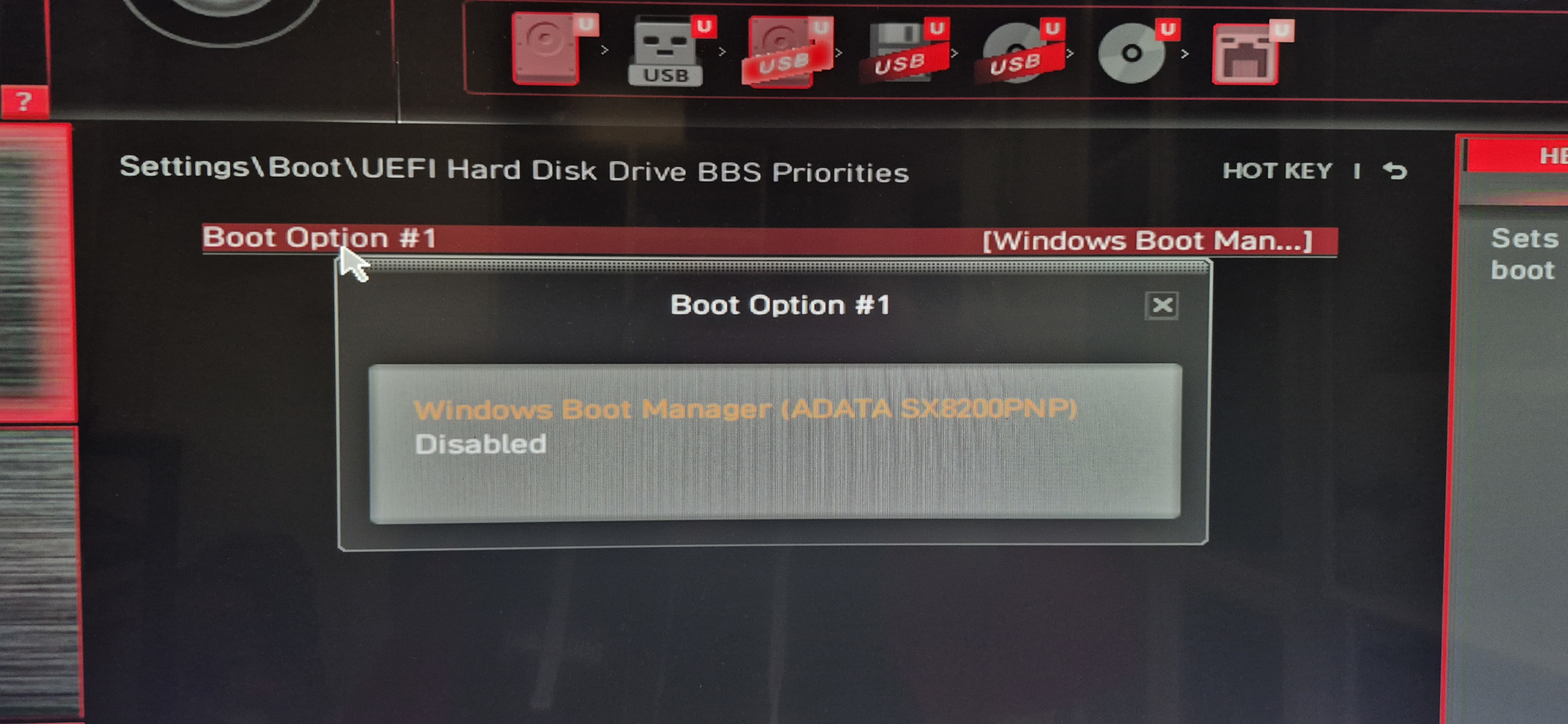 Now access the boot menu in the UEFI Hard Disk BBS tab, take a picture and post it here.