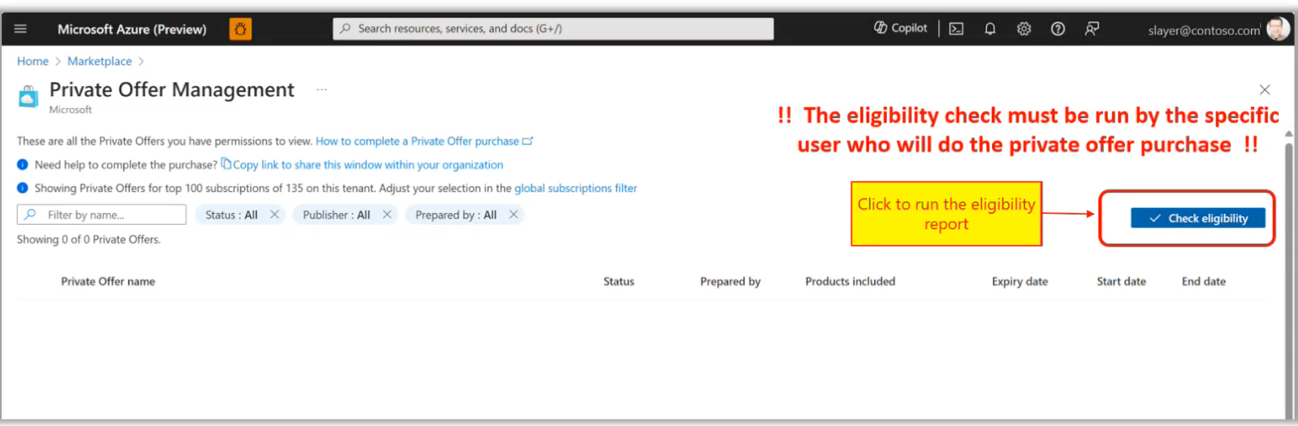 Not everyone in your organization has the same roles and permissions. Be sure the individual(s) within your organization running the private offer eligibility report is the person who plans to either accept or purchase the private offer.