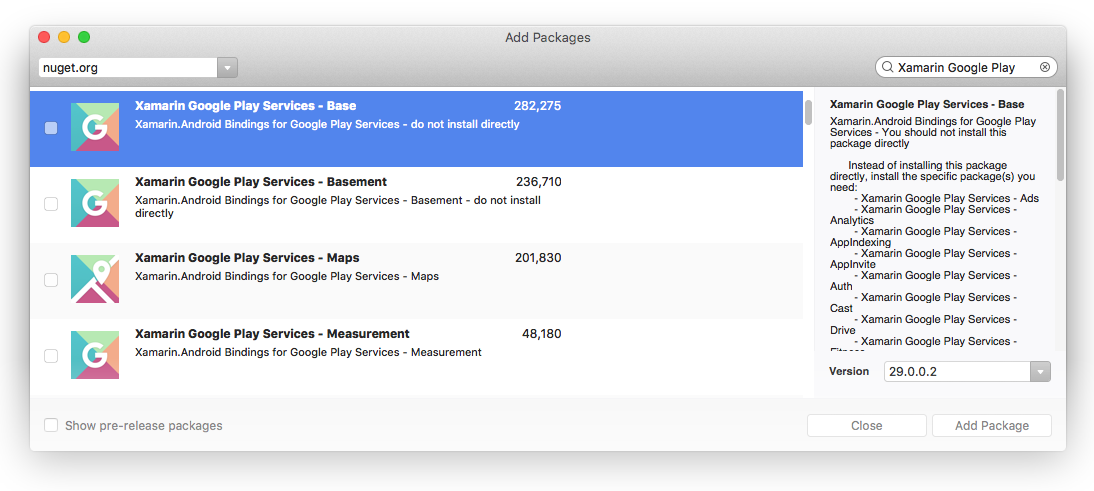 When you install Xamarin.GooglePlayServices.Base, all of the